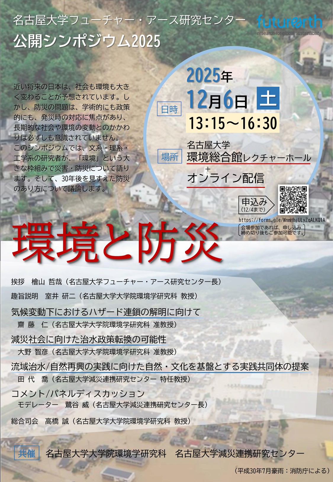 Open symposium on Environment and Disaster Risk Reduction at Nagoya University Future Earth Reseach Center